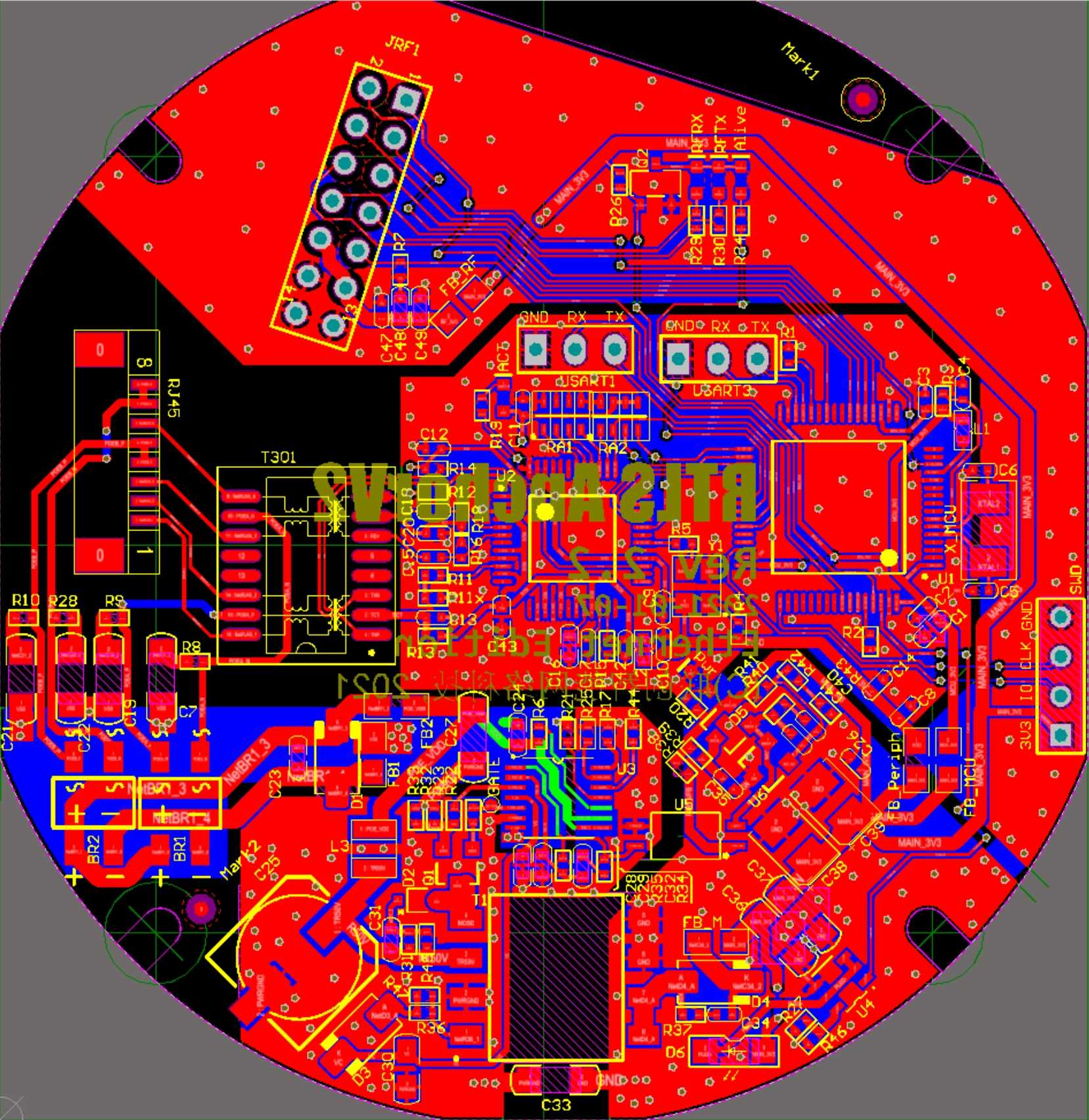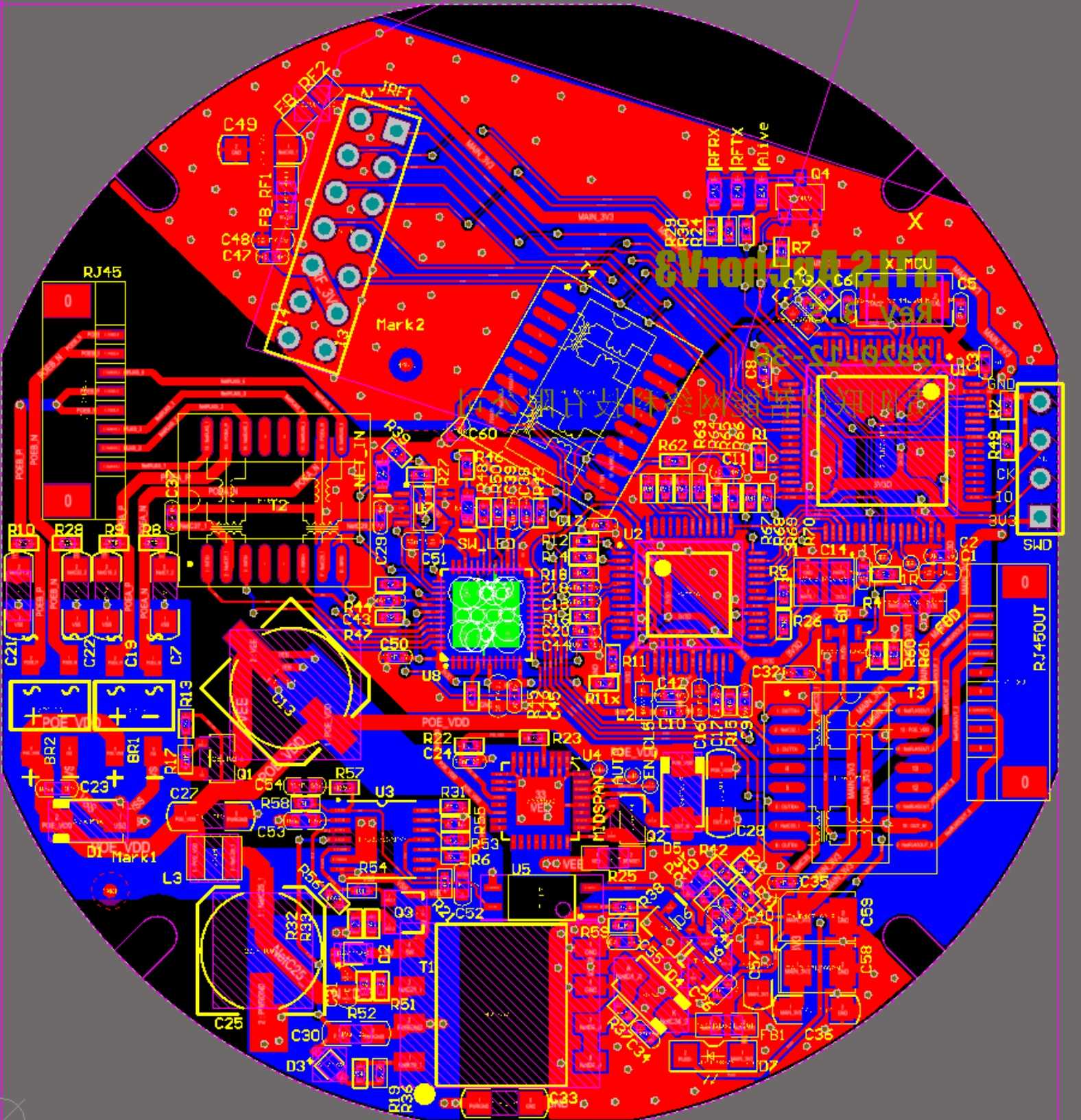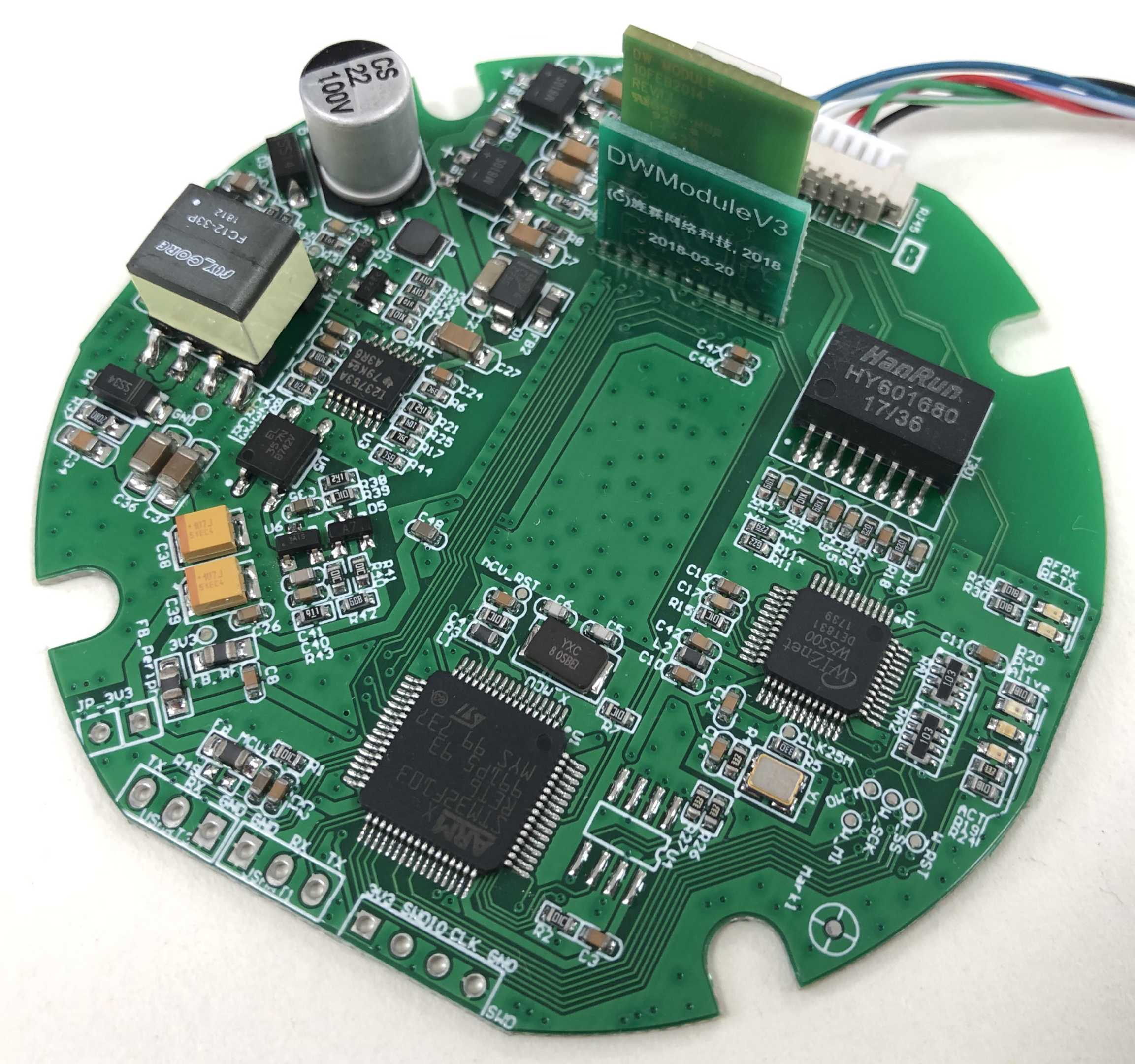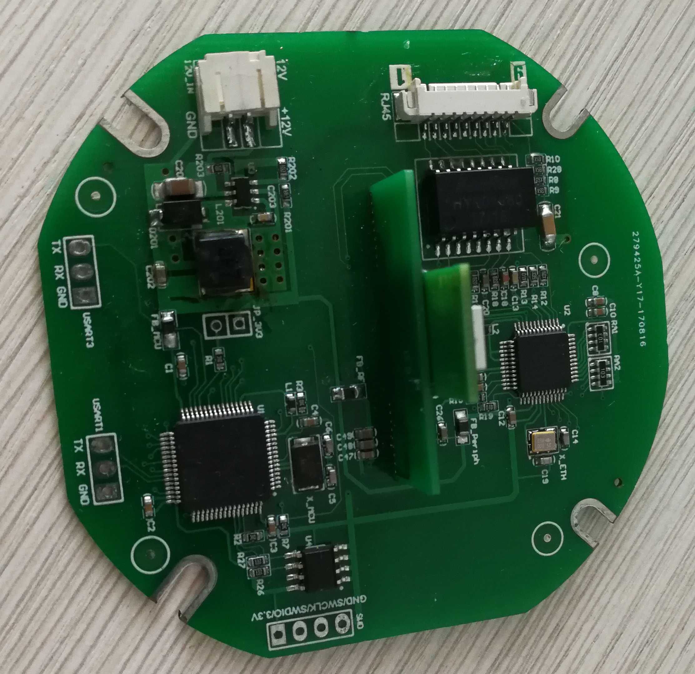 Later, we plan to use ESP32 as the WIFI interface and also use ESP32 as the main control MCU, so that STM32 and W5500 can be eliminated. On the one hand, it can save costs, on the other hand, it can support both WIFI and Ethernet. If the MCU is replaced, the anchor firmware needs to be completely rewritten, which is a bit of a workload. Not long after this plan was launched, the company decided to stop the project, and the research and development of new anchors was also suspended. The picture below is the new anchor PCB using ESP32 as the main control.