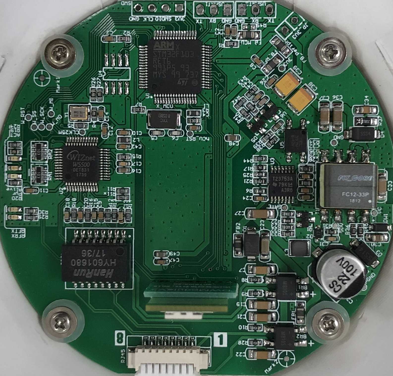 The network interface chip uses W5500. This chip uses SPI interface and the network speed is 100M. In fact, judging from the amount of UWB data, 100M is too much, and 10M is enough.
