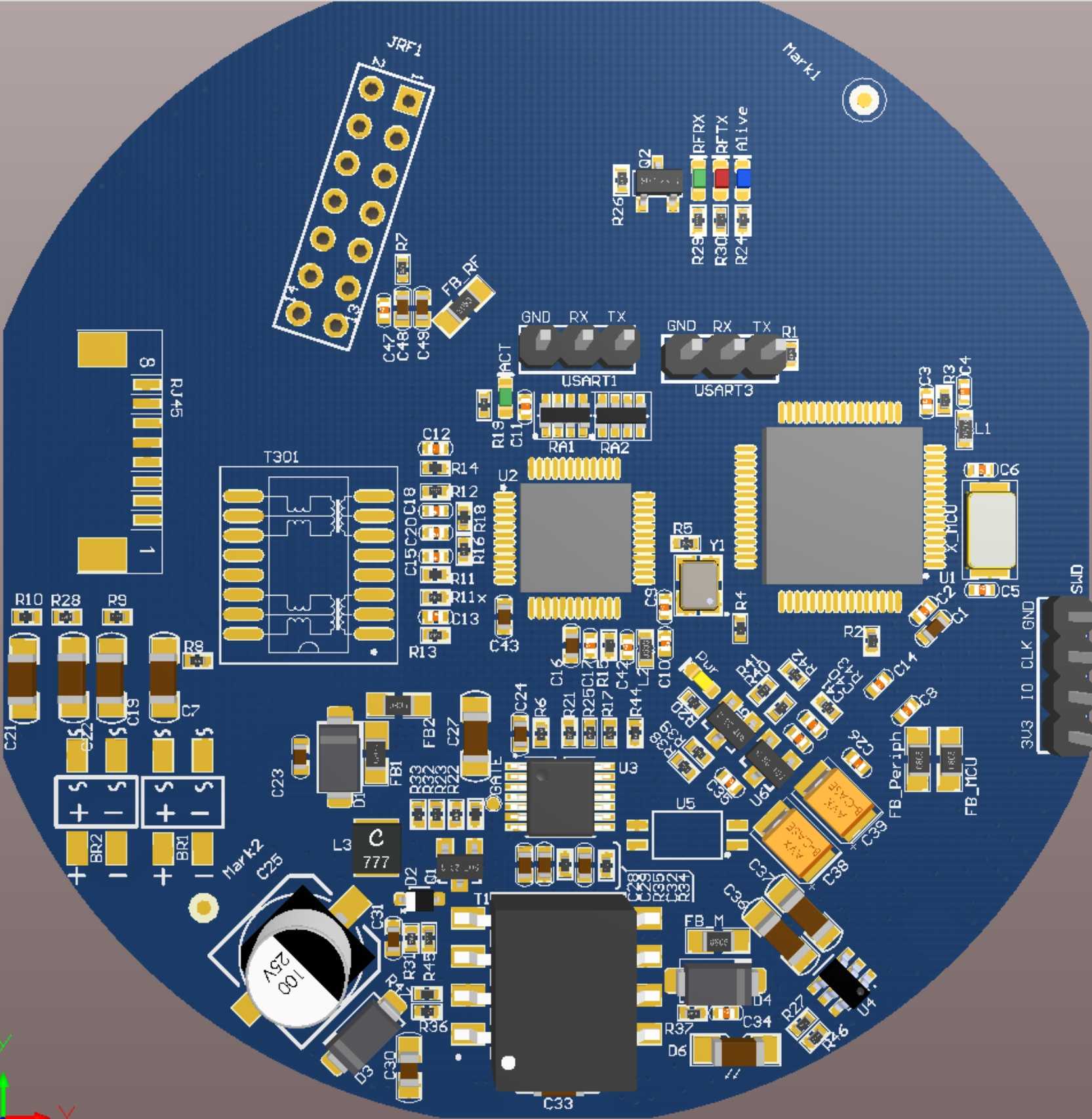 The main control of the location anchor is STM32F103RET6. This MCU has a relatively large Flash and a relatively large RAM, and is suitable for running RTOS.