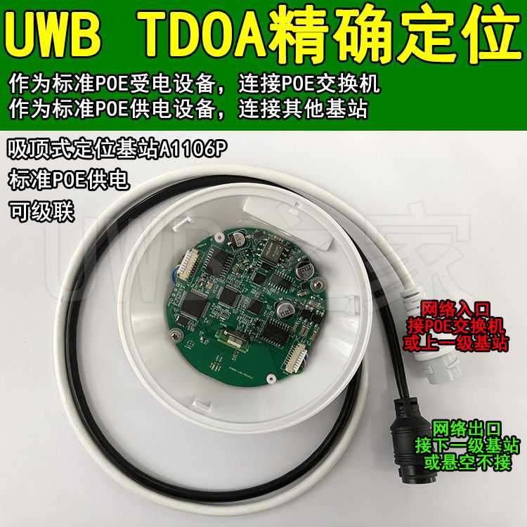 We also have a model of anchor that integrates a network switch chip and POE power supply. Multiple anchors can be cascaded and strung together to save wiring costs.